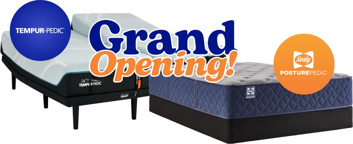 That's why we want to kickstart better sleep in our community at our Grand Opening! We will GIVE AWAY 5 premium mattresses & one incredible Tempur-Pedic, Stearns & Foster OR Sealy mattress with an adjustable base, worth up to $15,000!